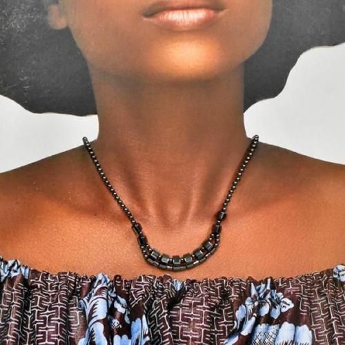 ☆レースのようにヘマタイトが編まれた、シックでおしゃれなネックレスです。