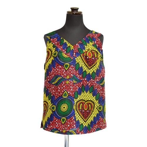 キテンゲ ステッチVネック ノースリーブブラウス 21
