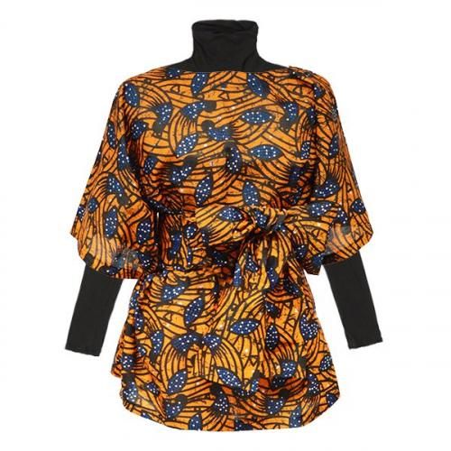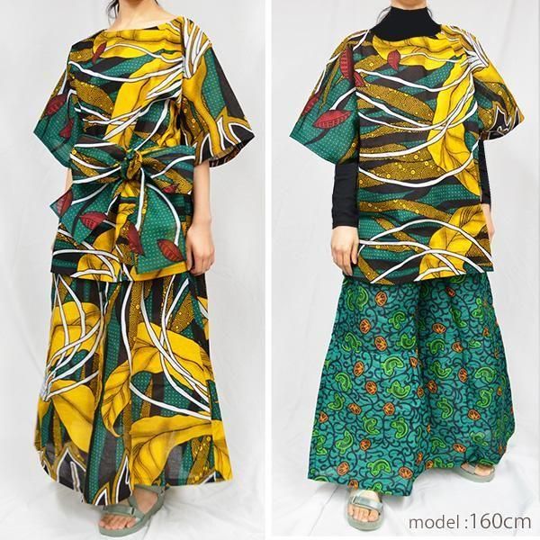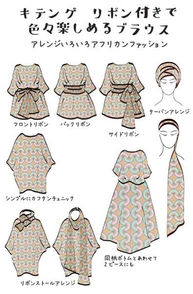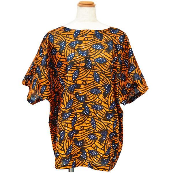 ☆アフリカンプリント布・キテンゲで仕立てた、ふんわりシルエットとドルマン袖が可愛い、アレンジいろいろ9way仕様の、らくちんトップス。