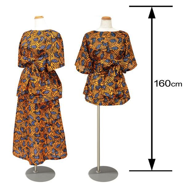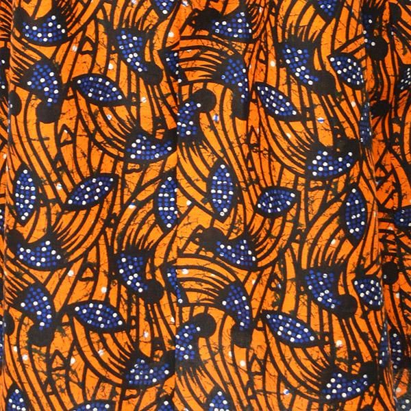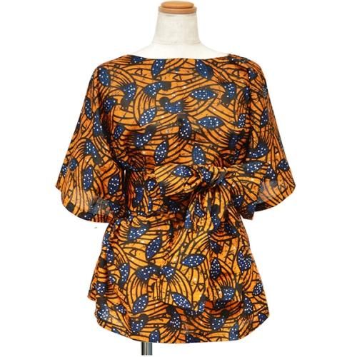 キテンゲ リボン付きブラウス 20(オレンジ×ブルー)