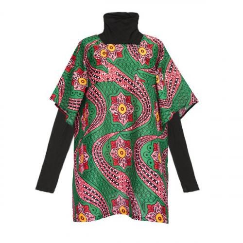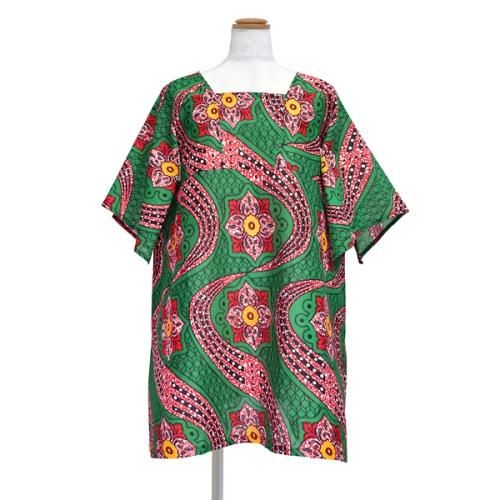 ☆東アフリカのプリント布・キテンゲで仕立てた、快適に過ごせる究極のリラックスウェア、カフタンドレス。頭からすっぽり被って楽に着られる、ゆったりシルエットのチュニックです。
