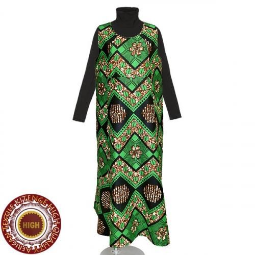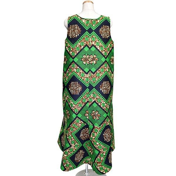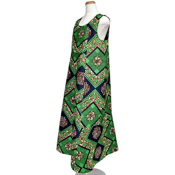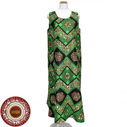 ☆アフリカンプリント布・キテンゲで仕立てた、マーメイドラインのロングマキシ丈 ノースリーブワンピース。