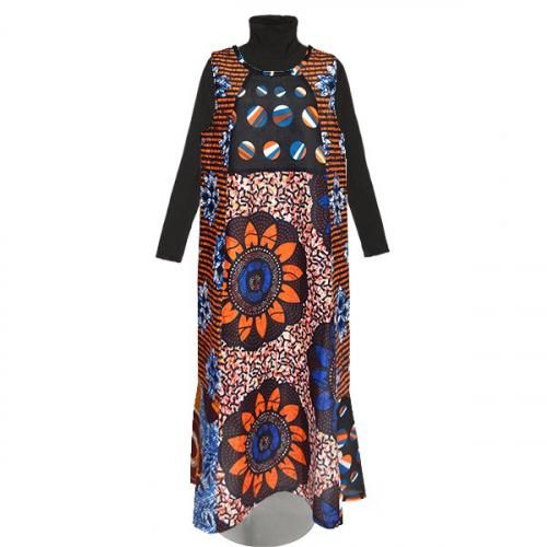 ☆アフリカンプリント布・キテンゲで仕立てた、マーメイドラインのロングマキシ丈 ノースリーブワンピース。