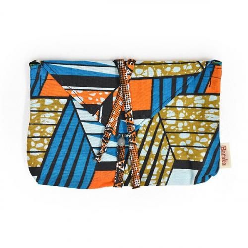 ☆カラフルなアフリカ布キテンゲで仕立てたヒモ巻きポーチ。入れる物を選ばず、自由な大きさで紐を巻くだけ。大小 2サイズ展開。