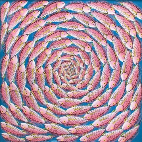 「アフリカの海〜サカナの大群〜ピンク〜」原画