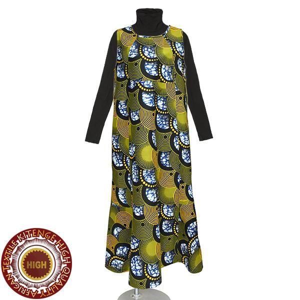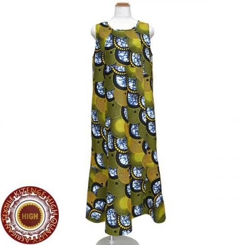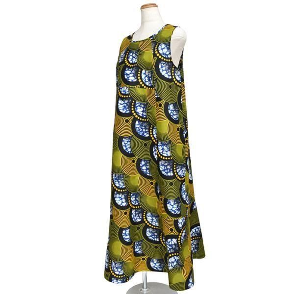 ☆アフリカンプリント布・キテンゲで仕立てた、マーメイドラインのロングマキシ丈 ノースリーブワンピース。