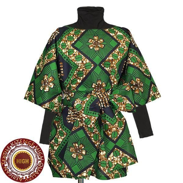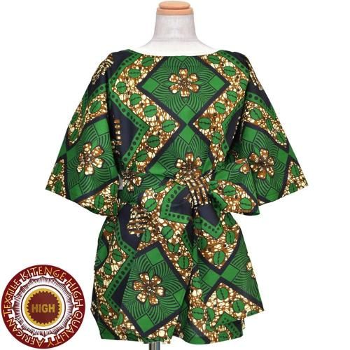 ☆アフリカンプリント布・キテンゲで仕立てた、ふんわりシルエットとドルマン袖が可愛い、アレンジいろいろ9way仕様の、らくちんトップス。