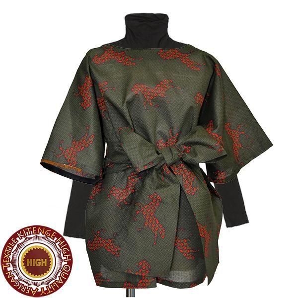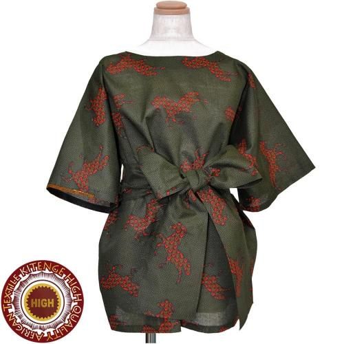 ☆アフリカンプリント布・キテンゲで仕立てた、ふんわりシルエットとドルマン袖が可愛い、アレンジいろいろ9way仕様の、らくちんトップス。