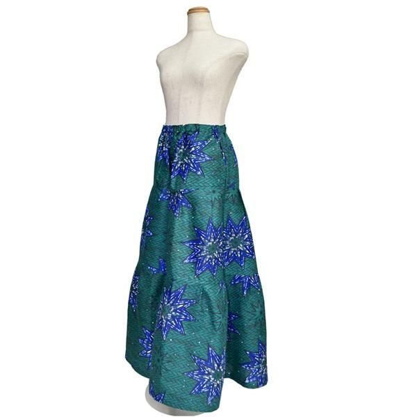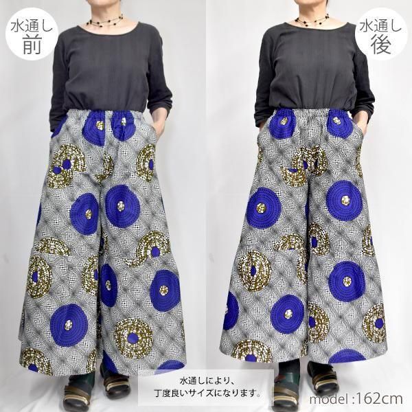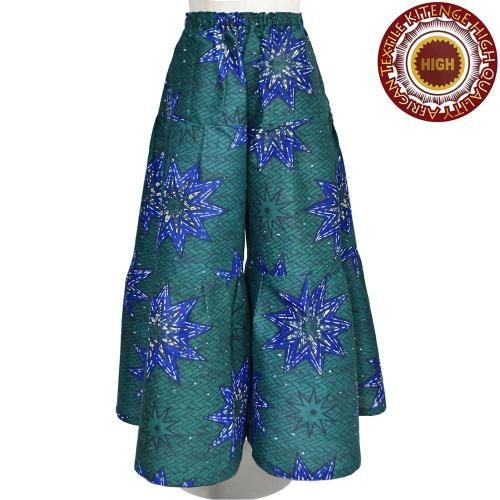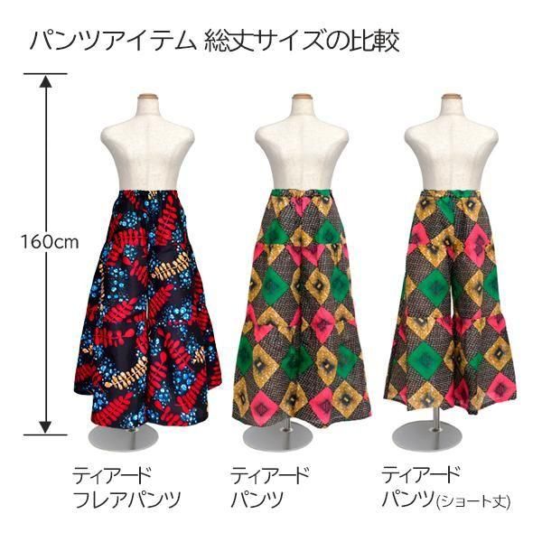 東アフリカのプリント布・キテンゲで仕立てた、ティアードフレアパンツ。