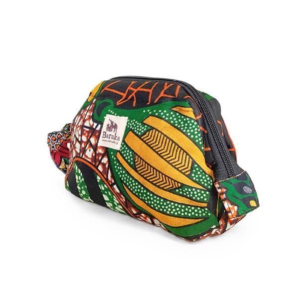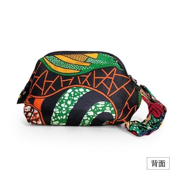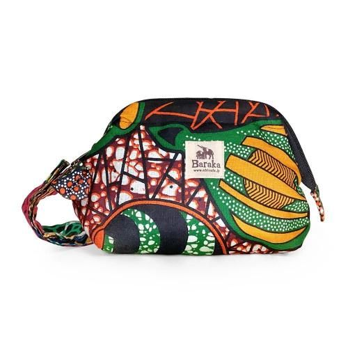 ☆キテンゲで仕立てた、自立型で大きく開いて出し入れ簡単、ぽってりとした形がかわいい多機能マルチモバイルポーチ。