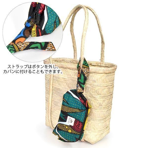 内側やポケット、ストラップ、すべて違う色柄のキテンゲを使ったこだわりデザインです。