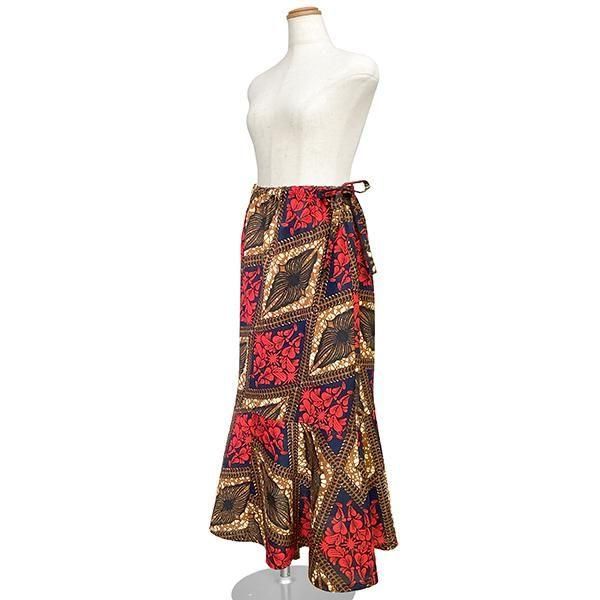 ☆アフリカンプリント布・キテンゲで仕立てた、マーメイドラインのマキシ丈ロングスカート。
