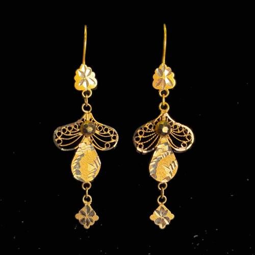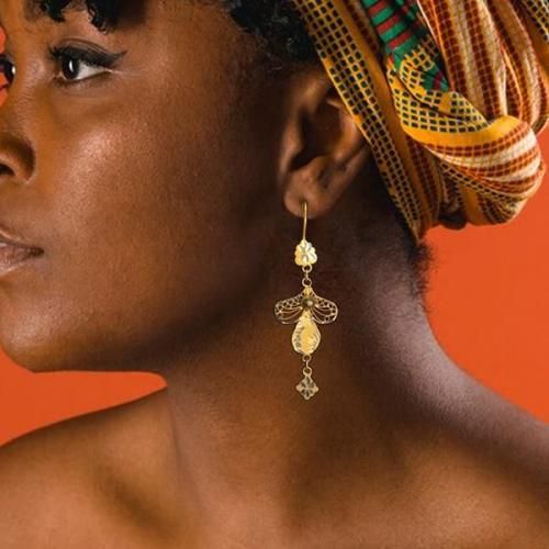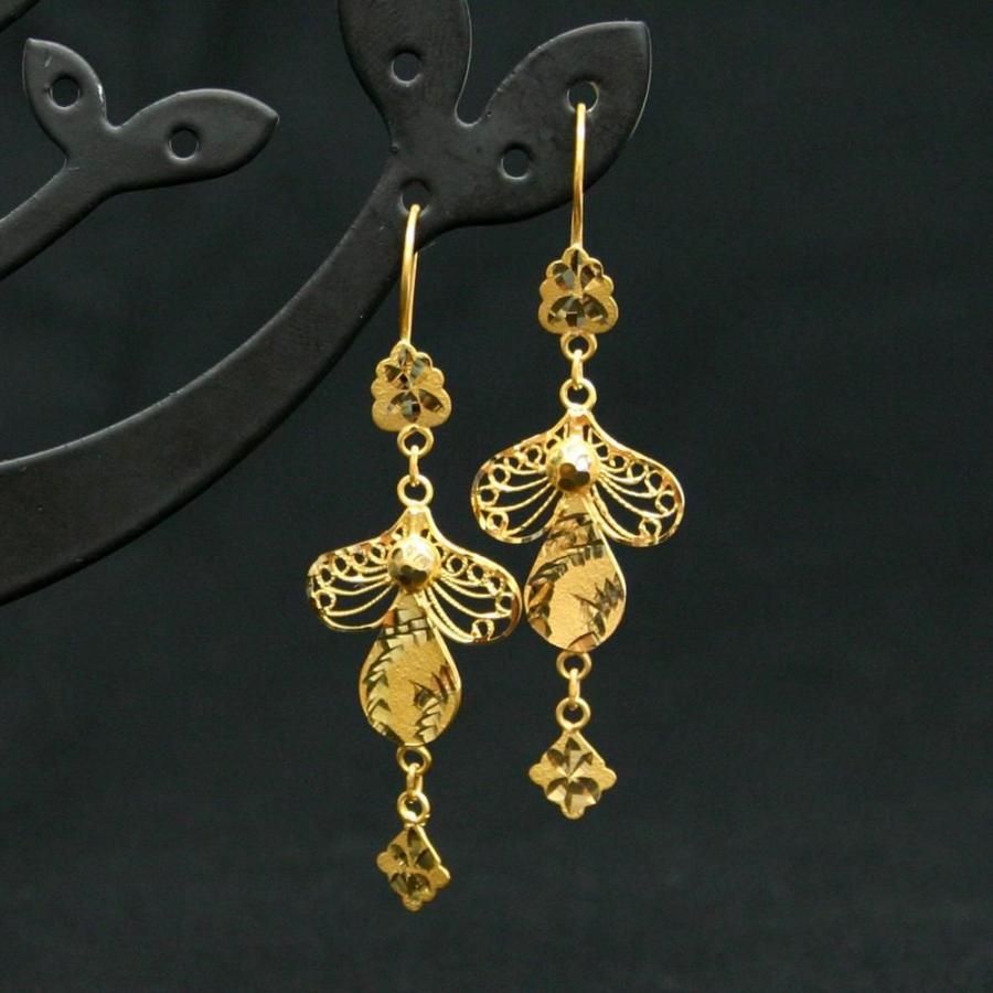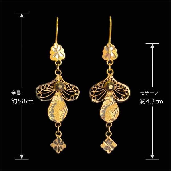 ☆エレガントでゴージャスな18金アフリカンジュエリー、華奢で繊細な透かし彫りが美しいフックピアスです。