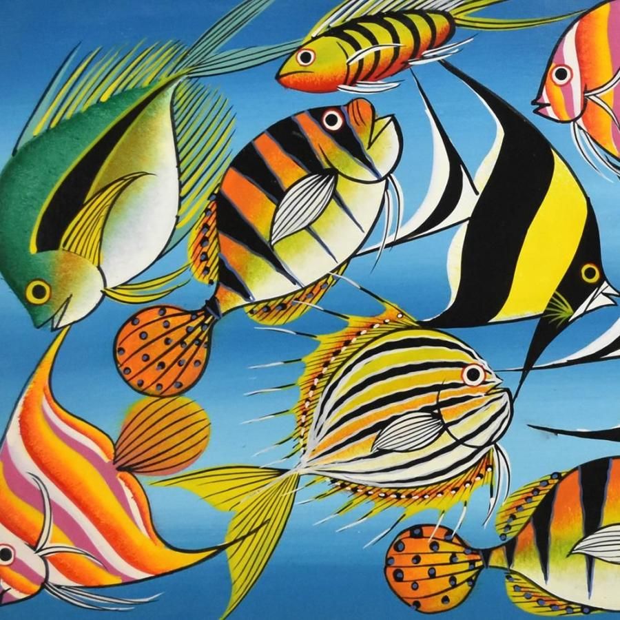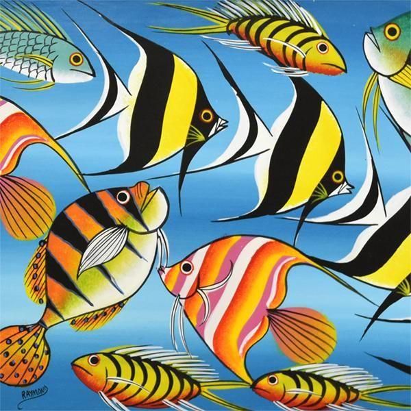 ☆色鮮やかな熱帯の魚たちや、コーラルリーフ。熱帯の海の生き物が大胆な構図で描かれた、レイモンドの作品です。