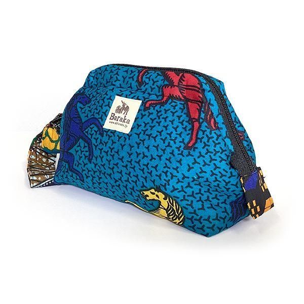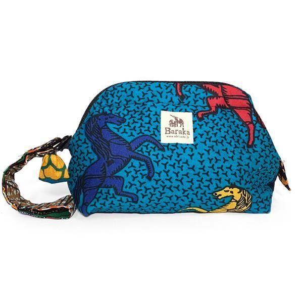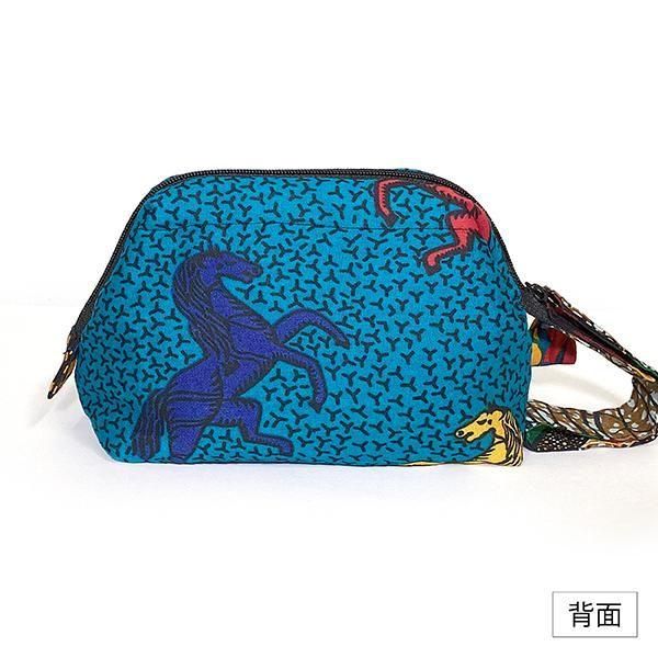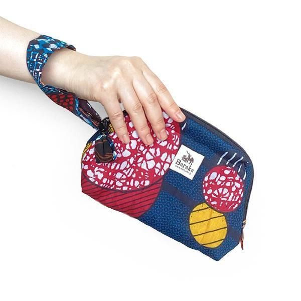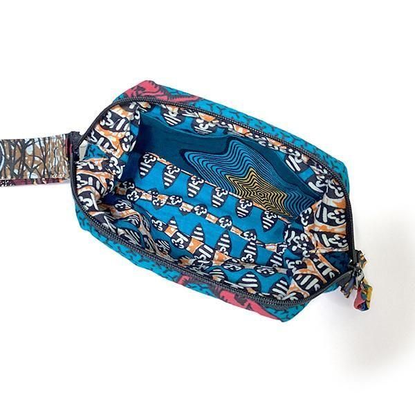 ☆キテンゲで仕立てた、自立型で大きく開いて出し入れ簡単、ぽってりとした形がかわいい多機能マルチモバイルポーチ。