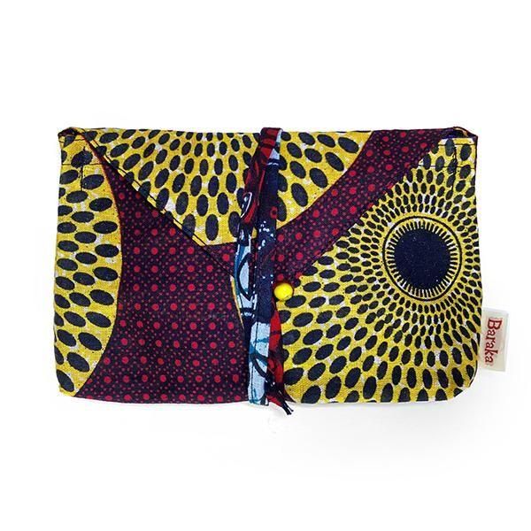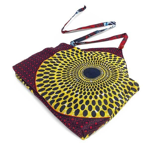 ☆カラフルなアフリカ布キテンゲで仕立てたヒモ巻きポーチ。入れる物を選ばず、自由な大きさで紐を巻くだけ。大小 2サイズ展開。