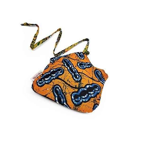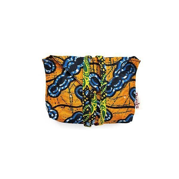 ☆カラフルなアフリカ布キテンゲで仕立てたヒモ巻きポーチ。入れる物を選ばず、自由な大きさで紐を巻くだけ。大小 2サイズ展開。