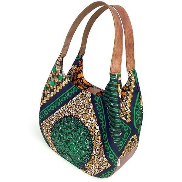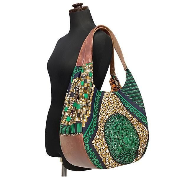 ☆東アフリカでもっとも愛されているプリント布・キテンゲで仕立てられた、ころりんトートバッグ。