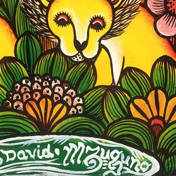 キャンバスいっぱいに、タンザニアの植物(主に出身地のキリマンジャロ地方の植物や花)を描く独特の作風で人気を博したデビッド・ムズグノ氏(2010年に逝去)の作風を受け継いだ、ムズグノブラザースのうちの一人、長男 ムシャーナ・ムズグノの息子。