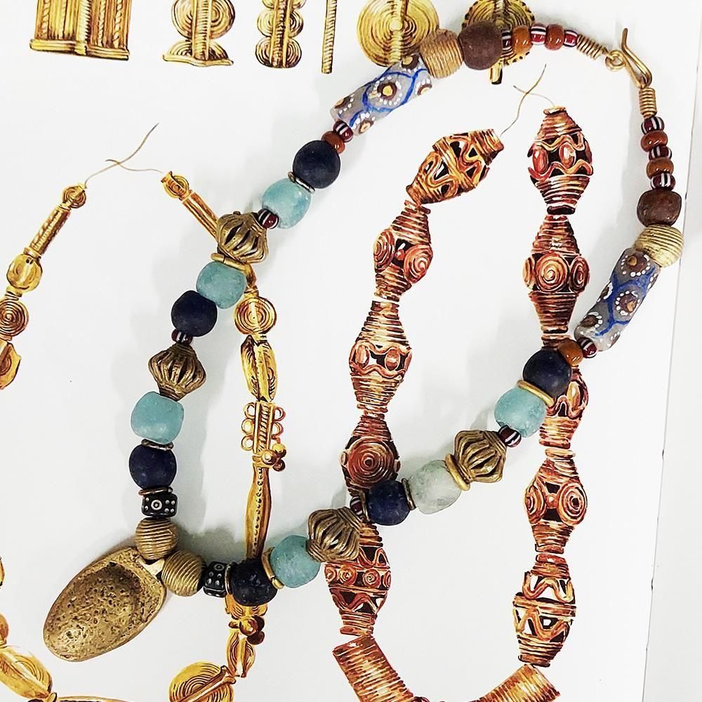 色とりどりのガラスビーズ、天然の素材やパーツを使い、現地職人へ特別注文で仕立てたアフリカンジュエリーです。すべて一点もの。