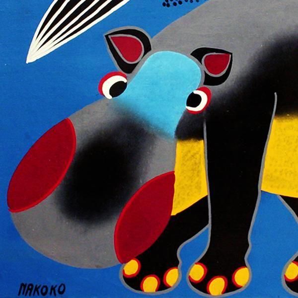 「映画館に勤めて、美しい映像をたくさん見ていたおかげかな」と笑うNakokoの描くカバは、ソフトタッチで実に愛くるしい。特徴ある象とともに、彼のオリジナル。