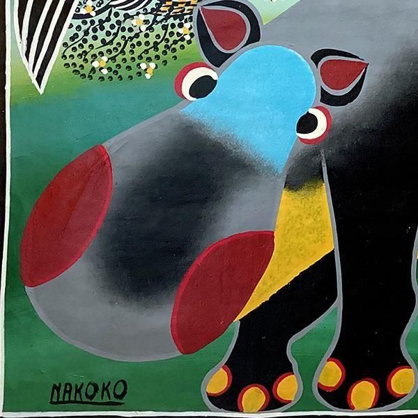「映画館に勤めて、美しい映像をたくさん見ていたおかげかな」と笑うNakokoの描くカバは、ソフトタッチで実に愛くるしい。特徴ある象とともに、彼のオリジナル。