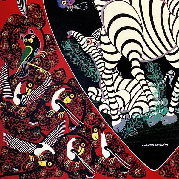 ティンガティンガアーティストの父Rajab Chiwayaの影響で1991年から絵筆を持ち、