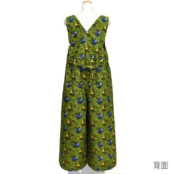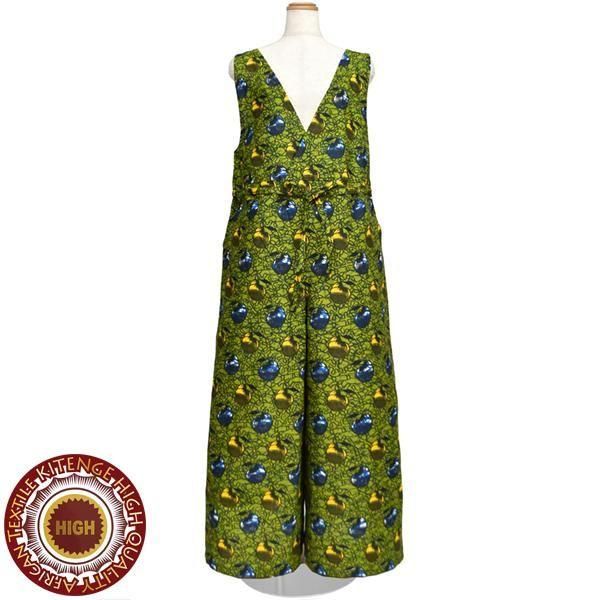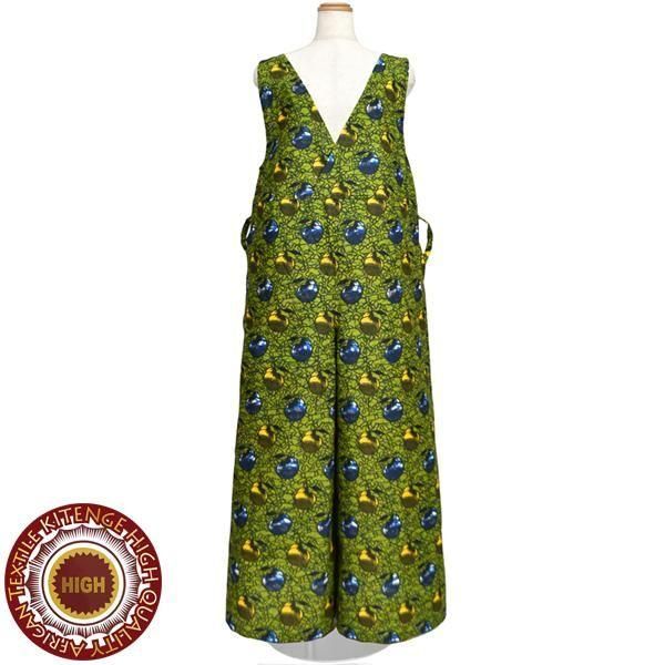 ☆アフリカンプリント布・キテンゲで仕立てた、大人ラフに着こなせるゆったりフォルムのサロペットパンツ。