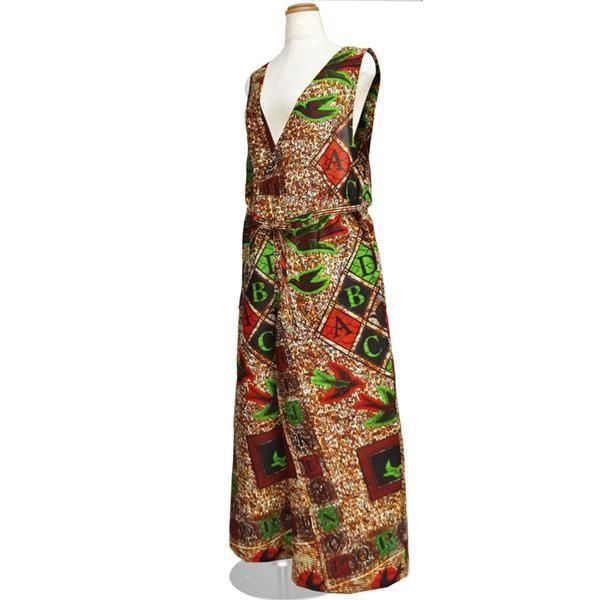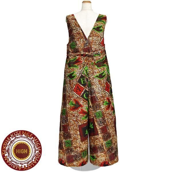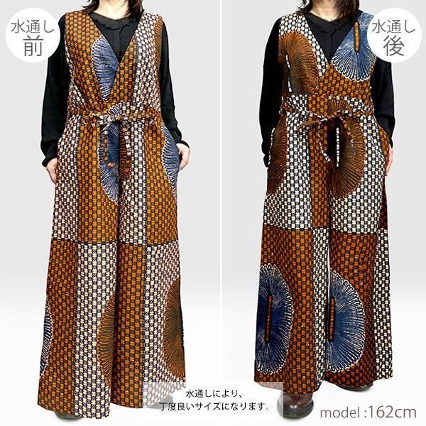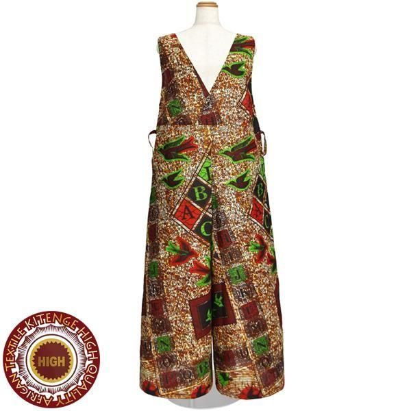 ☆アフリカンプリント布・キテンゲで仕立てた、大人ラフに着こなせるゆったりフォルムのサロペットパンツ。