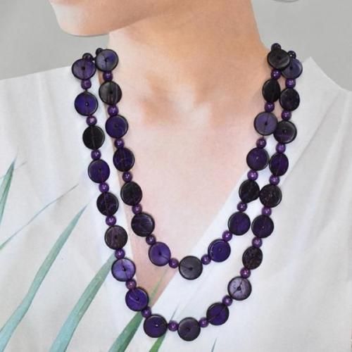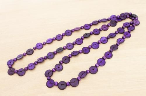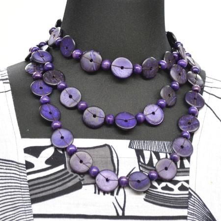 ☆ココナッツ&ウッド製のボタンモチーフをつなぎ合わせたロングデザインネックレス。